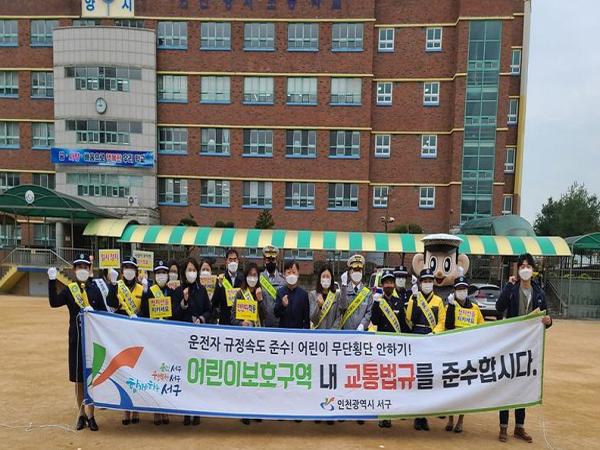 이번 캠페인은 인천 서구와 인천서부경찰서, 서부녹색어머니회가 합동으로, 어린이들의 등교 시간에 맞춰 어린이 보호구역 내 안전속도 준수 등 어린이 보호구역 내 교통안전에 대해 홍보하는 내용으로 진행됐다.