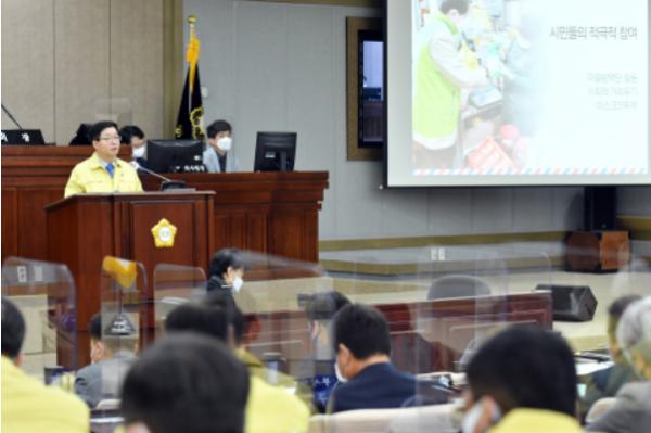 염태영 시장은 제356회 수원시의회 제2차 정례회 시정연설에서 “우리는 코로나19 사태 속에서 ‘더불어 사는 공동체’의 소중함을 경험했다”며 “시민과 함께 지난한 코로나19를 이겨내고, 지역경제를 되살리고, ‘지방자치법 전부개정 법률안’의 국회 통과를 쟁취하겠다”고 강조했다.
