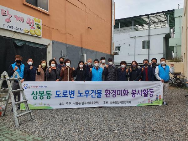 한국자유총연맹 상봉동분회(회장 윤순영) 및 상봉동 봉사단체장들은 지난 16일과 17일 양일 간 상봉동 도로변 노후 건물에 도색작업과 환경미화 봉사활동을 실시하였다.