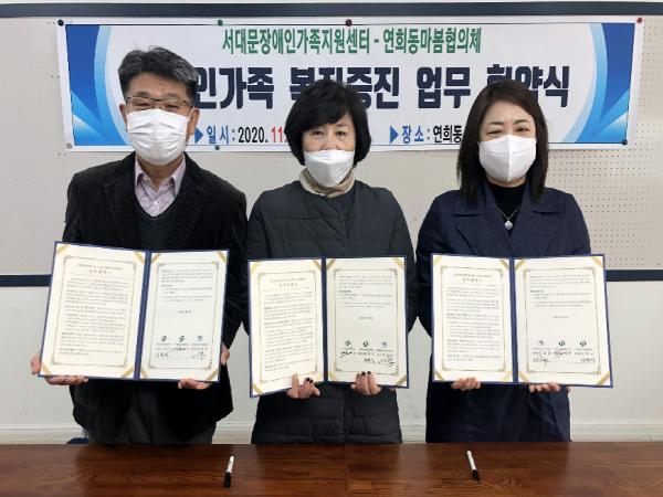 서대문구 연희동주민센터(동장 이한식)는 연희동 마봄협의체와 서대문장애인가족지원센터가 최근 장애인가족 복지증진를 위한 업무 협약을 체결했다고 18일 밝혔다.