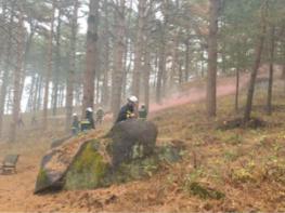 주요 훈련으로는 산불발생 현장통합지휘와 초동진화 체계점검 등 종합훈련을 통한 기계화 산불진화시스템의 숙련도 향상 및 방화선 설치 등에 중점을 두었다.