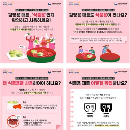 식품의약품안전처는 김장철을 맞아 건강하고 안전하게 식품을 섭취할 수 있도록 식품조리 기구의 올바른 선택과 사용방법에 대한 정보를 제공한다고 밝혔다.