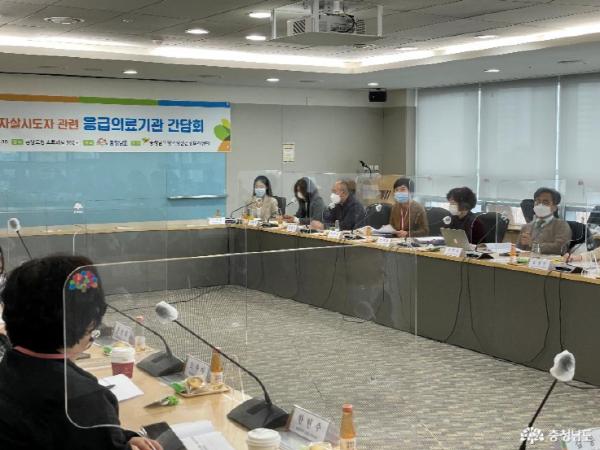도와 응급의료기관 14개소 및 기초정신건강복지센터, 천안자살예방센터 등 관계자 30여 명이 참석한 가운데 연 이번 간담회는 현황 보고, 사례 발표, 토론 등의 순으로 진행했다.