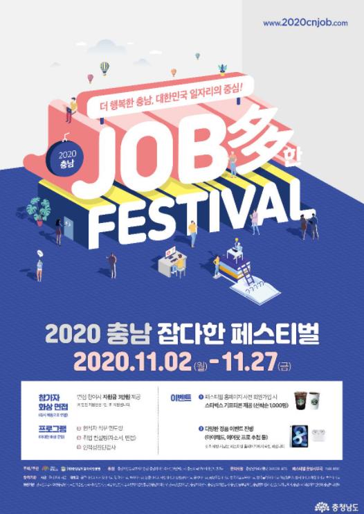 충남도는 ‘2020 충남 잡다(Job多)한 페스티벌(이하 페스티벌)’이 신개념 구인·구직 활동의 기회를 제공하며 큰 호응을 얻고 있다고 밝혔다.