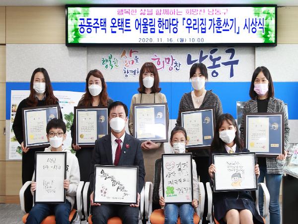 인천 남동구는 지난 8일 구월아시아드 8단지에서 열린 공동주택 온택트 어울림 한마당 행사 시 우리 집 가훈쓰기(캘리그라피 체험)에 참여한 주민들에게 상장을 수여했다고 18일 밝혔다.
