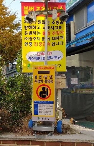 인천 계양구는 불법주·정차, 화물차 지정 차고지 외 장소 밤샘주차를 효율적으로 단속하기 위해 이동식 불법주·정차 단속 CCTV를 설치해 지난 17일부터 시범운영 중이다.