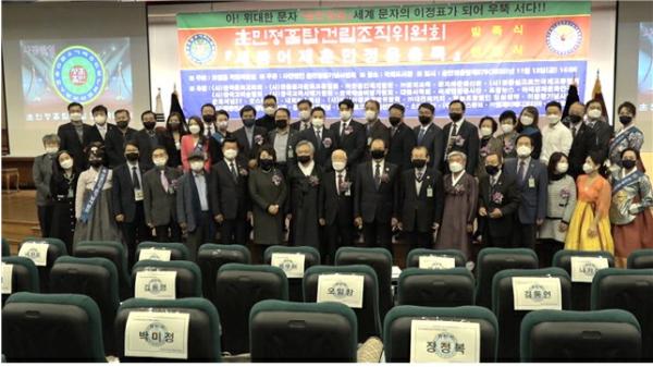11월 13일 오후 2시에 국회도서관 대강당에서 더불어민주당 오영훈 국회의원실이 주최하고 사단법인 훈민정음기념사업회가 주관한 훈민정음탑건립조직위원회 발족식이 『세종어제훈민정음 총록』헌정식을 겸해 코로나 19의 규칙을 준수하여 50명만 참석한 가운데 거행되었다.