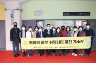 구는 지난 11월 17일 오후 2시 도봉 다가치센터 2호 ‘도봉이재밌담’에서 주요 내빈과 주민 20여명이 참석한 가운데 ‘도봉역 하부 커뮤니티 공간’ 개소식을 개최했다. 이날 행사는 사회적 거리두기 실천을 위해 최소한의 초청인사만 참석한 가운데 치러졌다.