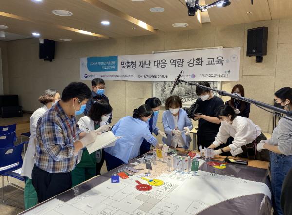 세부적으로 국립중앙의료원 및 세브란스 재난의료교육센터와 화상연결을 통해 ‘내·외부 재난에 대한 병원 대응’을 주제로 언택트 강의를 진행하였으며, 모바일 어플리케이션 ‘뷰라보’를 활용한 환자 중증도 분류와 강사진과 참가자가 함께 하는 이원중계 방식을 통해 실제 상황과 유사한 시나리오를 기반으로 모의 도상 훈련(TTS, Table Top Simulation)을 실습했다.