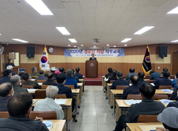(사)대한노인회 김천시지회는 11월 18일 10시부터 김천시지회 2층 강당에서「2020년 경로당 회장 직무 교육」을 실시했다.