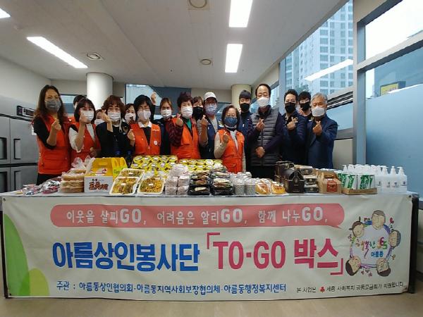 아름동상인봉사단은 지난 18일 아름동지역사회보장협의체와 ‘아름상인봉사단 투-고(TO-GO)박스’ 지원사업을 진행했다.