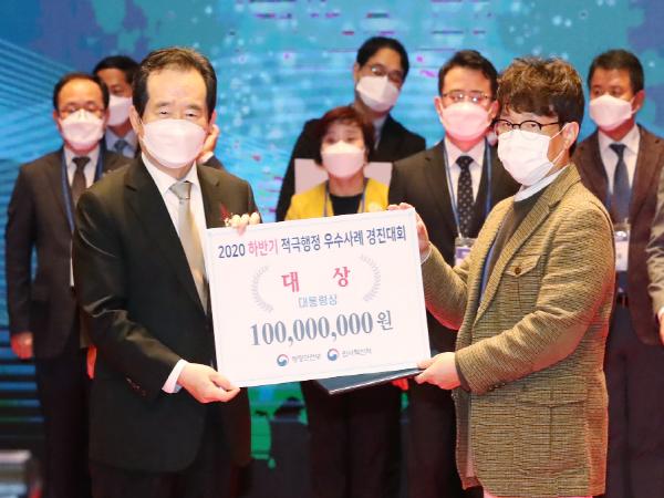 수원시는 18일 정부 세종청사에서 행정안전부와 인사혁신처가 공동 개최한 ‘2020년 적극행정 우수사례 경진대회’에서 대통령상을 받았다.