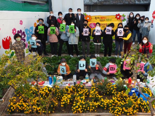 대구광역시 남구청은 대명2동 우리마을 교육나눔 사업의 일환으로, 쓰레기가 버려져 냄새나고 어두워진 공터 텃밭에 마을의 청소년과 주민들이 ‘사계절 힐링 꽃밭’을 만들어 눈길을 끌고 있다고 밝혔다.