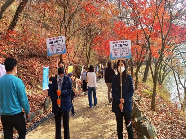 함안군은 가을 단풍철을 맞아 관내 코로나 확산방지를 위해 입곡군립공원을 중심으로 방역수칙을 집중 홍보하고 있다고 밝혔다.