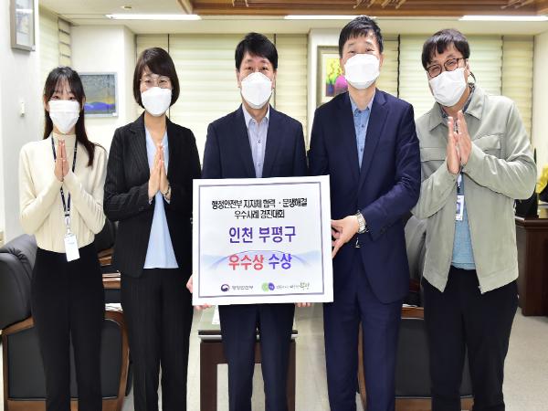 19일 구에 따르면 행안부 주관 ‘지자체 협력·분쟁해결 및 숙의기반 주민참여 경진대회’에서 부평구가 ‘협력·분쟁해결’ 분야 우수상을 수상했다.