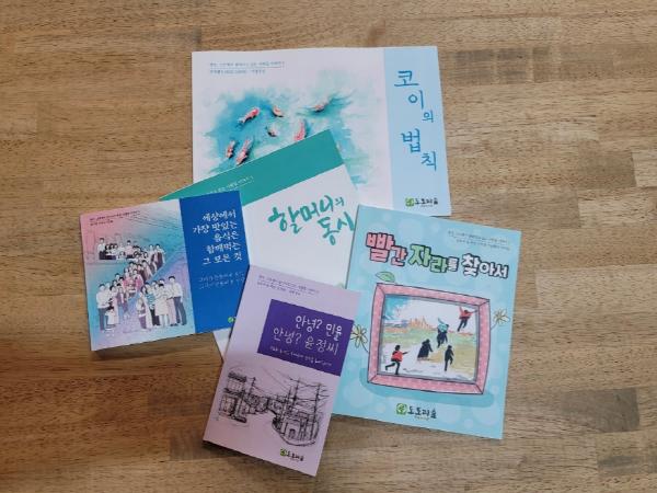 이번에 출판되는 인생 그림책은 취미로 비단잉어를 키우다가 비단잉어 박사가 된 주창수님의 ‘코이의 법칙’, 도시에서 생극면으로 이사 온 김윤정님이 도토리 숲 작은 도서관을 만들어간 과정을 담은 ‘안녕? 민율 안녕? 윤정 씨’, 신양1리 마을회관에 모여계신 할머니들 이야기를 동시로 재구성한 ‘할머니의 동시’, 도토리숲 마을학교 아이들의 동네 탐험기인 ‘빨간 자라를 찾아서’, 50년 전 생극으로 이사와 가족뿐 아니라 마을과 이웃을 보살피신 남기영님의 삶과 그녀가 만들어온 음식 이야기를 담은 ‘세상에서 가장 맛있는 음식은 함께 먹는 그 모든 것’ 등 총 5권이다.