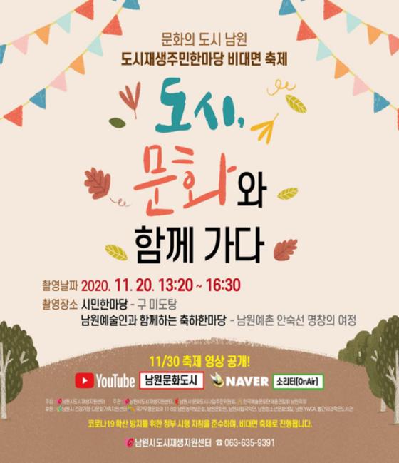 남원시 관계자는 “코로나19 상황에서도 축제의 기획과 실행 과정에 열의를 가지고 참여해 주신 남원시민과 문화예술인, 그리고 단체들에게 깊은 감사를 드리며, 문화와 함께 가는 남원시의 모습을 각인시킬 수 있는 소중한 기회가 될 것이다”라고 밝혔다.