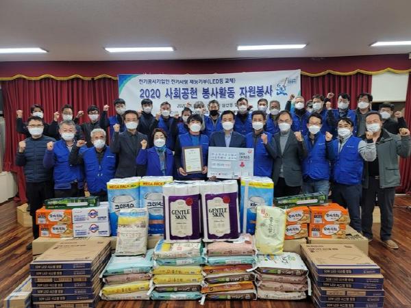 노후설비 안전점검 등을 마치고 진행한 물품 전달식에서 심정보 한국전기공사협회 서울 중부회장은 “코로나19의 장기화로 소외이웃이 더욱 힘들고 어려운 시기를 보내고 있는 만큼 전기공사기업인으로서 사회적 역할과 책임을 다하고자 봉사를 하게 되었다”고 밝혔다.