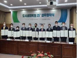 밀양시는 19일 서울시 한강홍수통제소에서 환경부(장관 조명래), 밀양시를 포함한 8개 지방자치단체, 한국환경복원기술학회(회장 남상준), 한국생태복원협회(회장 홍태식)와 “도시생태복원 25+ 업무협약”을 체결했다고 밝혔다.