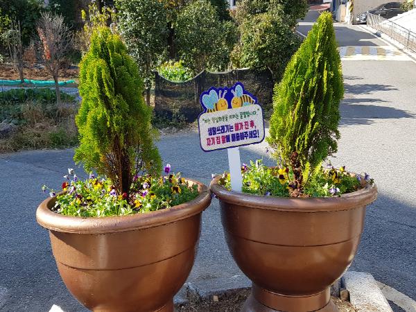 장승포동(동장 윤봉환)은 지난 18일 관내 생활폐기물 상습 불법 배출 문제를 해소하고 쾌적한 마을환경 조성을 위해 양심화분을 설치하였다.