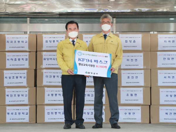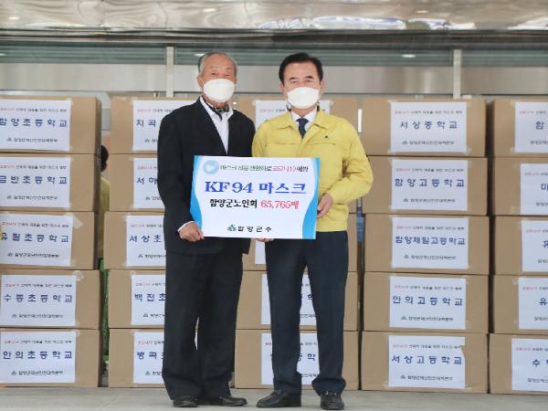 경남 함양군은 19일 오전 집단생활로 코로나19 감염 위험이 높은 학생 및 어르신 1만6,600여명에게 KF-94 마스크 8만2,600여매를 긴급 배부했다.