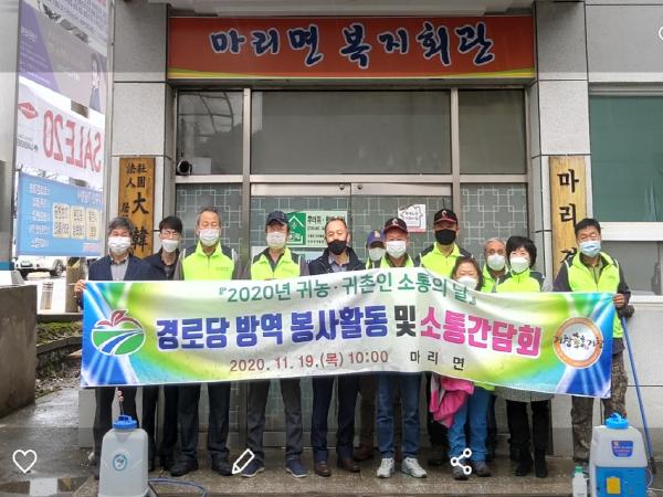 거창군 마리면(면장 이수용)은 19일 귀농·귀촌인과 지역 주민 등 20여 명이 참여한 가운데 ‘마리면 귀농·귀촌인 소통의 날’행사로 경로당 방역봉사 활동과 지역주민과의 소통의 시간을 가졌다.