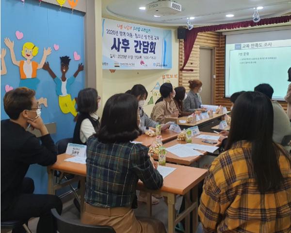 전주시청소년성문화센터(센터장 심기본)는 19일 성 인권 교육 추진학교 담당자와 강사 등 20여 명이 참석한 가운데 ?년 장애 아동·청소년 성 인권 교육 사후 간담회’를 했다.