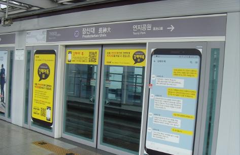 또한 승강장도어를 이용하여“김해야! 톡”홍보에 박차를 가하고 있으며, 다양한 매체를 통한 홍보활동을 전개하고 있다.