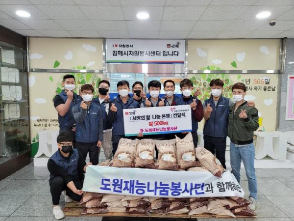 이날 전달된 쌀은 도원재능나눔봉사단 회원들의 따뜻한 마음이 사랑의 쌀 나눔 은행에 전달되어, 김해시자원봉사센터협의회(회장 조숙자)를 통해 정부양곡지원을 받지 못하는 취약계층 세대(독거노인, 한부모가정, 장애인세대 등)에 전달 될 예정이다.