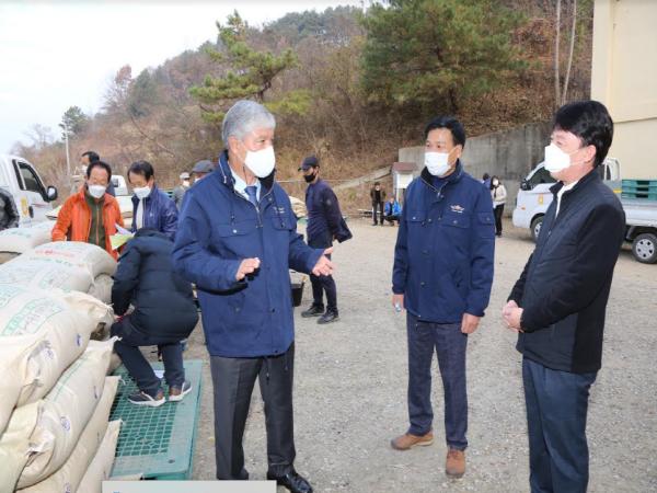 문정우 금산군수는 지난 18일 2020년산 공공비축미곡 건조벼 수매현장을 찾아 올해 쌀 작황과 수매에 대한 현장 애로사항을 청취하고 농업인들을 격려했다.