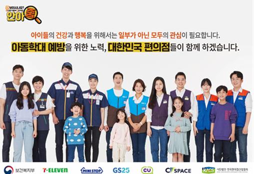 5개 편의점(GS25, CU, 세븐일레븐, 미니스톱, 씨스페이스)에서는 ‘훈육을 위한 체벌이 아동학대 범죄로 이어질 수 있다’는 내용을 계산대 화면에 송출하고, 편의점이 아동학대 신고 거점이 될 수 있음을 안내하는 포스터를 부착한다.