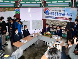 김천시는 지난 19일 전북 무주군 나제통문 덕유정에서 김천-전주간 철도건설사업의 조기 추진을 위해 경북·전북도 도지사 및 통과노선 시장?군수(김천·전주시, 진안·무주군)와 함께 공동건의문을 채택하였다.