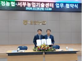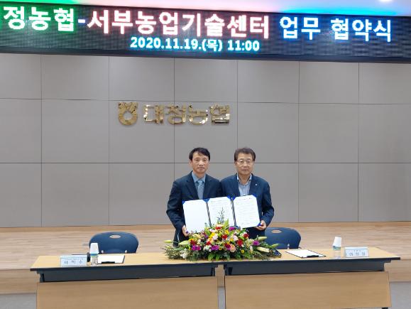 제주특별자치도 농업기술원 서부농업기술센터(소장 서익수)는 11월 19일 대정농협 대회의실에서 대정농업협동조합(조합장 이창철)과 지역 농업 발전을 위한 업무협약을 체결했다고 밝혔다.