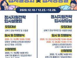 성북구가 2021년도 대입을 대비하여 ‘2021 온라인 정시지원전략 입시설명회’와 ‘2021 정시지원전략 입시상담실’을 개최해 수험생과 학부모에게 입시전략을 제시한다.