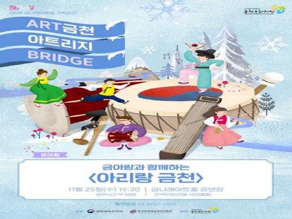 금천문화재단이 11월 25일(수) 오후 7시 30분 금나래아트홀 공연장에서 ‘아리랑 금천’ 공연을 개최한다.
