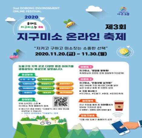 오는 11월 20일부터 30일까지 온라인에서 도봉구(구청장 이동진) ‘제3회 지구미소 축제’가 펼쳐진다.