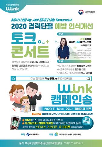 이번 토크콘서트는 일하는 여성이 결혼, 육아 후에도 계속해서 일할 수 있는 가정, 기업, 사회, 문화를 조성하기 위한 것으로, 코로나바이러스감염증-19(코로나19) 확산 방지를 위해 사전녹화 영상을 온라인 플랫폼(www.부산윙크.kr)에 공개하는 형식으로 운영된다.