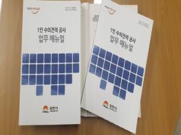 김천시에서는 지난 10월, 사업소 및 읍면동에서 처리하고 있는 1인 수의견적 공사 업무를 쉽게 처리할 수 있는 길잡이가 될 통일된 업무 매뉴얼을 제작?배부하여 업무 능률향상에 기여하였다.