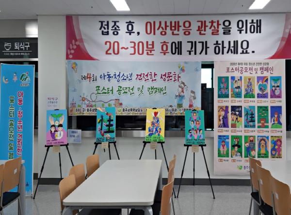 충주성폭력상담소는 지역 내 학생들이 직접 제작한 성폭력 예방 포스터를 건강복지타운에 전시 중이다.