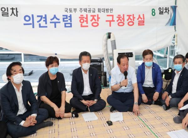 유 구청장은 정부의 부동산 정책 기조에는 적극 공감한다는 기존 입장은 견지했지만, “8·4 부동산 대책에서 상암동 일대 6200호의 주택공급을 발표할 때와 마찬가지로 이번에도 당사자인 마포구와 사전협의 없이 일방적으로 부지 맞교환을 추진하고 있는 상황에 대해 우려와 실망을 금할 수 없다”라고 지적했다.