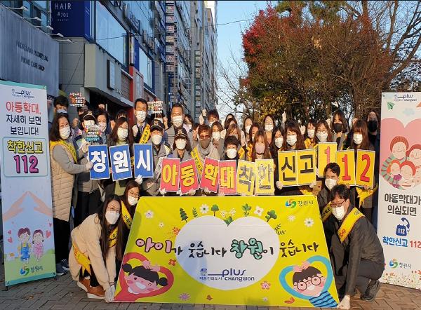 창원시는 20일 아동학대예방의 날과 아동학대예방 주간을 맞이하여 아동학대 예방에 대한 시민들의 관심 촉구를 위해 『아이가 웃습니다! 창원이 웃습니다!!』 라는 슬로건으로 캠페인을 진행하였다.
