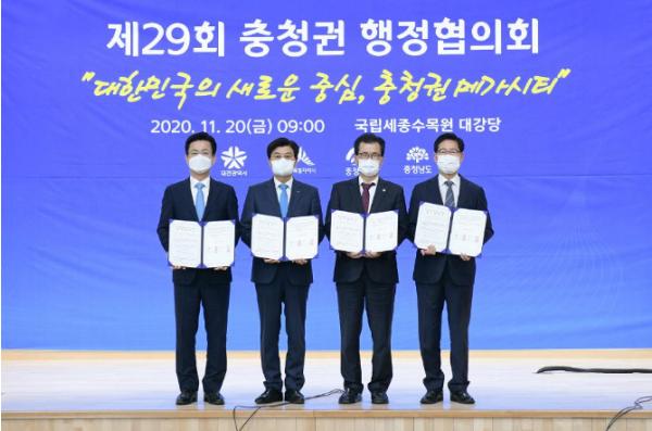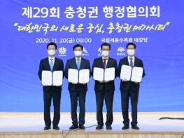 충청권 4개 시도지사들로 구성된 충청권 행정협의회가 20일 국립세종수목원 대강당에서 제29회 정례회의를 열고 충청권 광역생활경제권 구축에 힘을 모으기로 의견을 모았다.