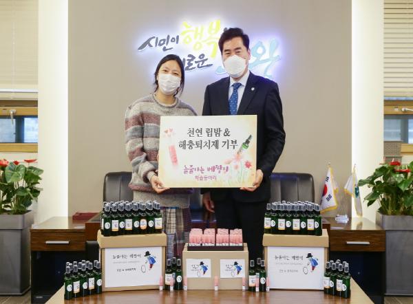 의왕시 평생학습동아리‘놀줄아는 베짱이(회장 이금비)’는 20일 동아리 회원들이 직접 만든 천연립밤 100개와 천연 해충퇴치제 100개를 의왕 내 지역아동센터에 전해달라며 의왕시에 기부했다.