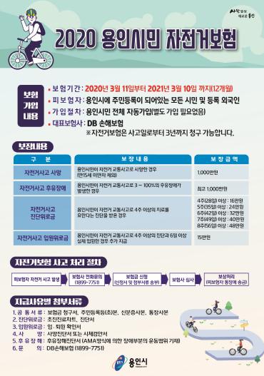 시민 이 모씨는 2019년 10월 처인구 김량장동에서 자전거를 타고 가다 차량과 충돌하여 사망했다. 이 모씨의 자녀들은 용인시 자전거보험이 있다는 사실을 알고 보험금을 신청해 1350만원을 지급 받았다.