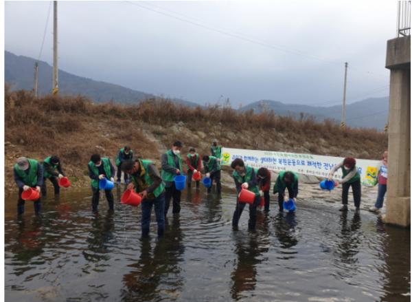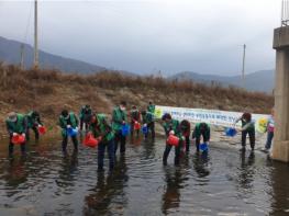 새마을지도자장흥군협의회은 18일 자연형 생태하천 가꾸기 위하여 새마을지도자 30여명과 함께 평화천, 탐진강 하류 지역에 미꾸라지를 방류 하였다.