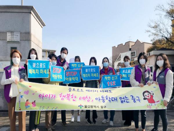 울산광역시 중구 반구1동 행정복지센터는 19일 오후 1시부터 내황초등학교 일대에서 동 지역사회보장협의체 위원 및 통장 등과 함께 아동학대 예방을 위한 캠페인을 전개했다.